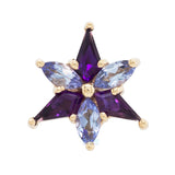 - 9mm threaded end with alternating (3) 4mm x 2mm Kite-Cut Amethyst AA in Prong's & (3) 3mm x 1.5mm Marquise-Cut Tanzanite AA in Prong's