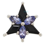- 7mm threaded end with alternating (3) 3mm x 1.5mm Kite-Cut Amethyst AA in Prong's & (3) 2.5mm x 1.25mm Marquise-Cut Tanzanite AA in Prong's