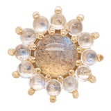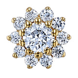 - 8mm threaded end with (1) 4mm Round Mercury Mist Topaz surrounded by (12) 1.5mm Mercury Mist Topaz' in Prong's