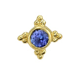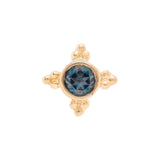 - 5mm threadless end with (1) 2mm Round London Blue Topaz AA in Bezel with tiny bead accents