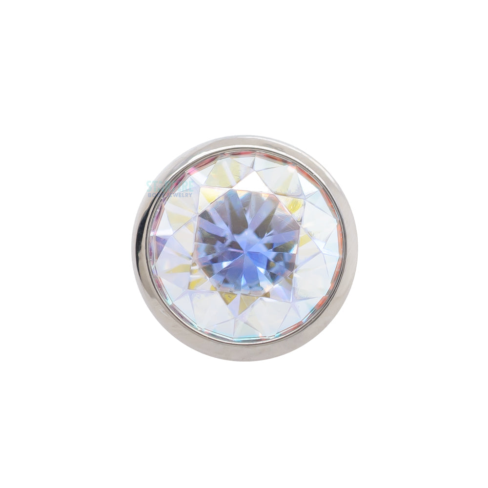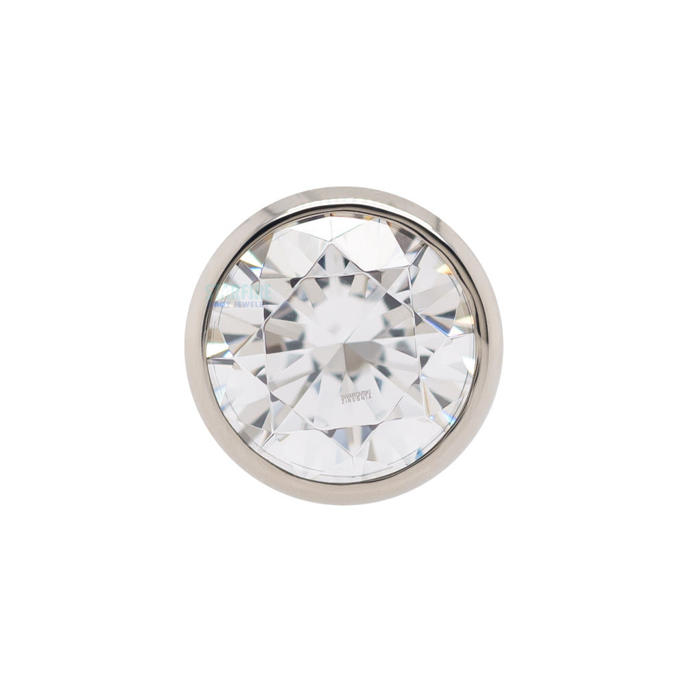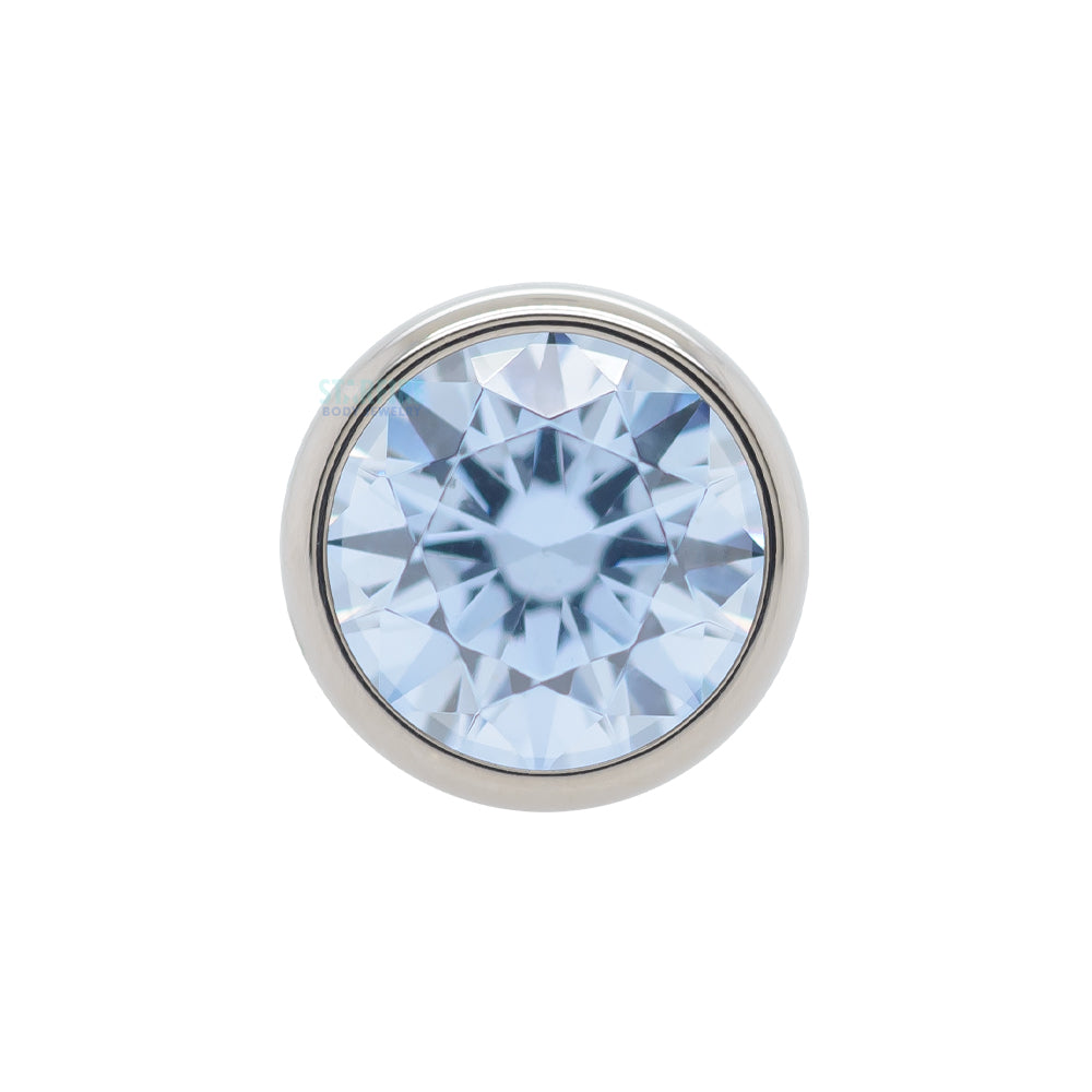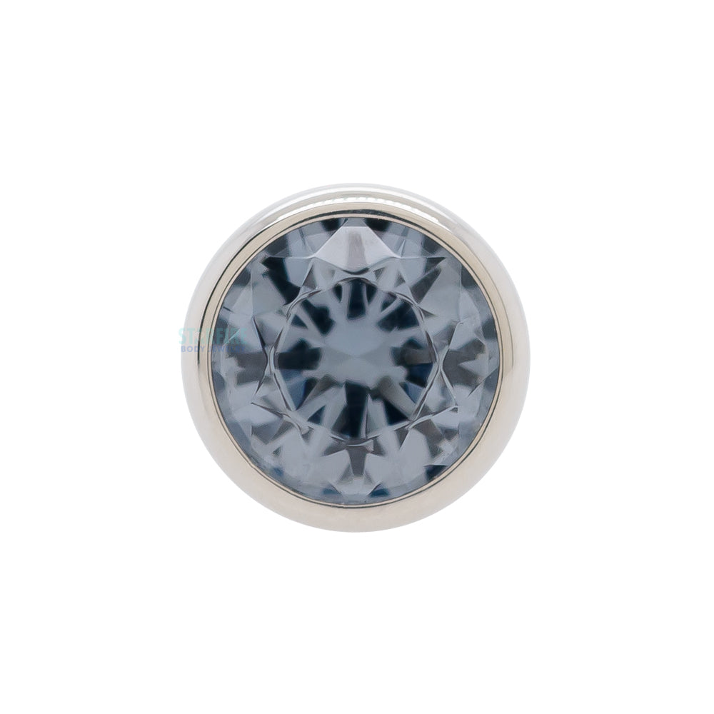 A good basic CZ with a metal bezel wrapping completely around the gem.