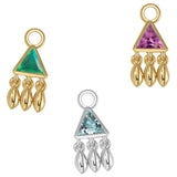 - 7mm x 4mm charm with (1) _mm Trillion Cut Diamond in Bezel & (3) Marquise Gold Bead Dangles