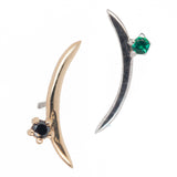 This curved end is like a crescent moon and the prong set gem is the shooting star.