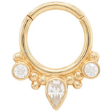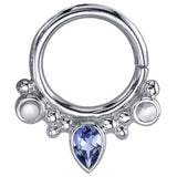 "Eden Pear" Hinge Ring in Gold & Platinum with Rainbow Moonstone & Tanzanite