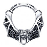 Add a touch of vampire-inspired flair to your look with the "Lilith"! This hinge ring features a sleek bat silhouette with Black CZ adorned wings.