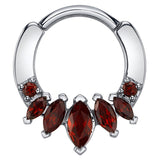 Vibrant marquise Garnets gradually increase in size, creating a stunningly eye-catching hinge ring!