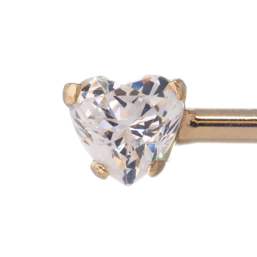 Threadless 14 ga. 18k Yellow, White or Rose Gold Straight Barbell