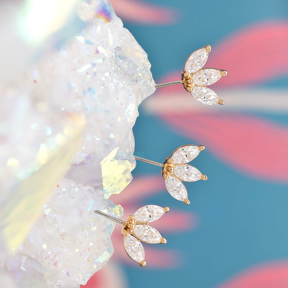 • 7.5mm x 5.5mm forward facing threadless end with (3) 4mm x 2mm Marquise-Cut White CZ's in Prong's