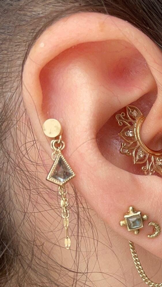 Commonly worn in: earlobes, sensitive lobes, cartilage, helix, conch, tragus, monroe, medusa, philtrum, lip, labret