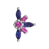 • 7mm x 5mm threaded end with (2) 2.5mm x 1.25 Marquise-Cut Iolite AA with alternating (2) 1.5mm x 1mm Baguette-Cut Rhodolite AA in Prong's surrounding (1) 1.5mm Round Rhodolite AA in Prong's