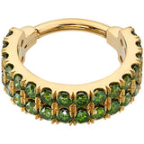 The Telesto Hinged Ring features TWO row of Emerald Green Diamonds set in prongs. These are the ultimate show of class for your piercing.