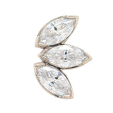 - Mini: 5.5mm x 4mm threaded end with (3) 3mm x 1.5mm Marquise-Cut Brilliant-Cut Faceted Gemstones in low profile Prong's