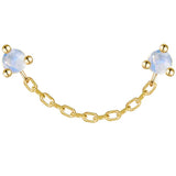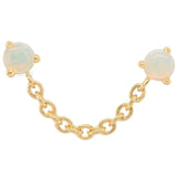 - (1) 2mm Round Opal Cabochon Gemstone in Prong's pin attached to a 20mm chain with (1) 2mm Round Opal Cabochon Gemstone in Prong's pin