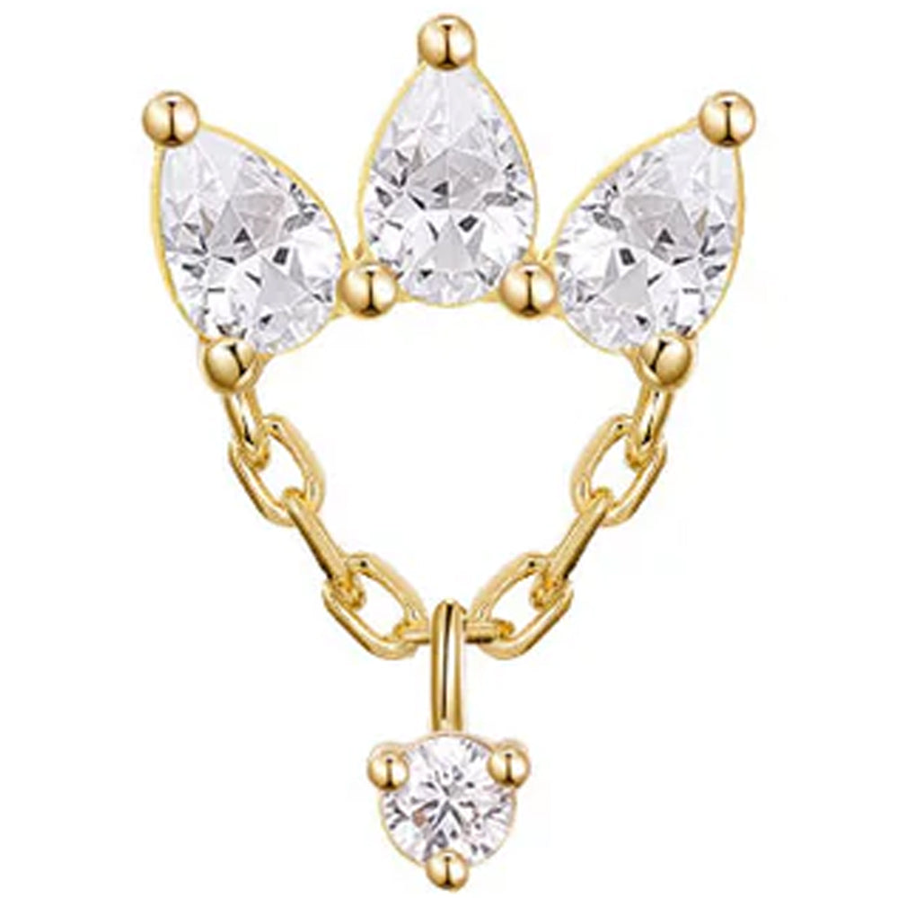 • 10.5mm x 7.2mm threadless end with (3) _mm x _mm CZ Pear Cut CZ's in Prong's & (1) _mm Round CZ on a dangle