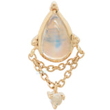 - 11.5mm x 5.5mm threadless end with (1) 5mm x 3mm Sunstone Pear in Bezel, (1) 1.5mm Round White Diamond in Prongs