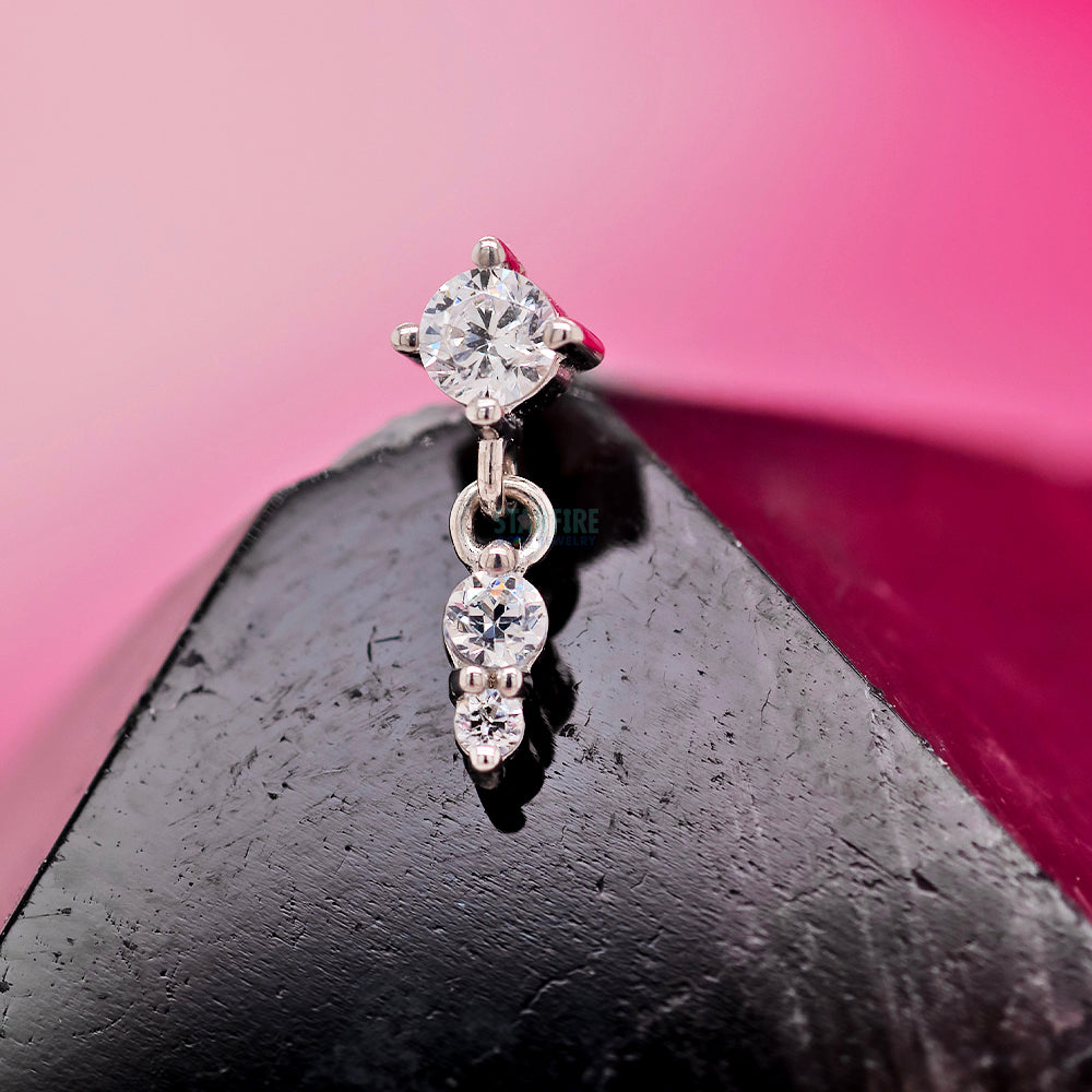 A timeless, elegant piece featuring tapered round stones in prongs with a delicate dangle, and the option to choose your hearts desire in colored gemstone.