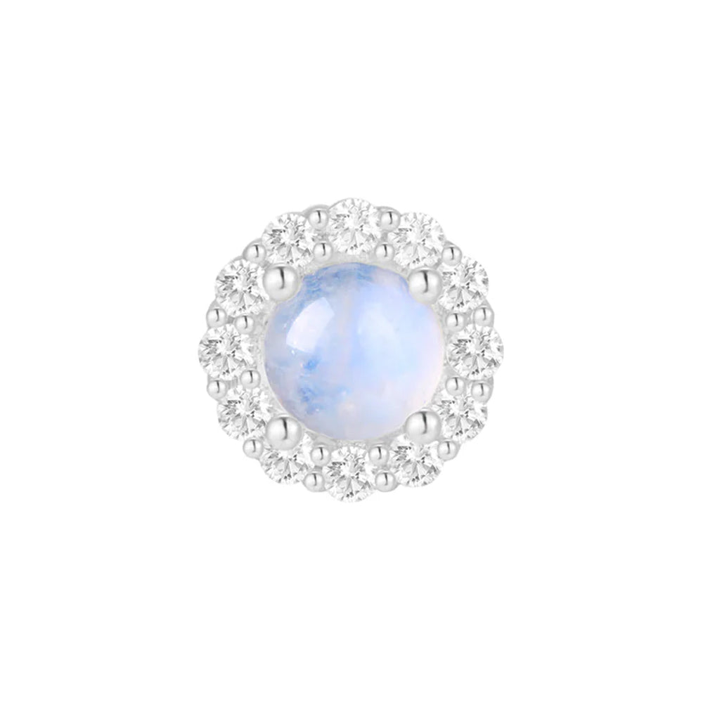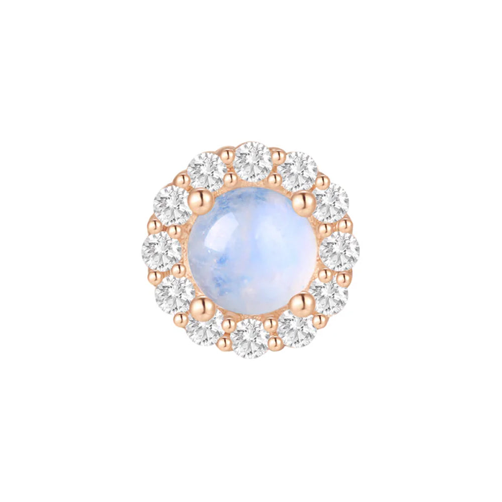 Experience true "Joy" with this dreamy piece adorned with ethereal Blue Moonstone surrounded by a halo of Moissanite.