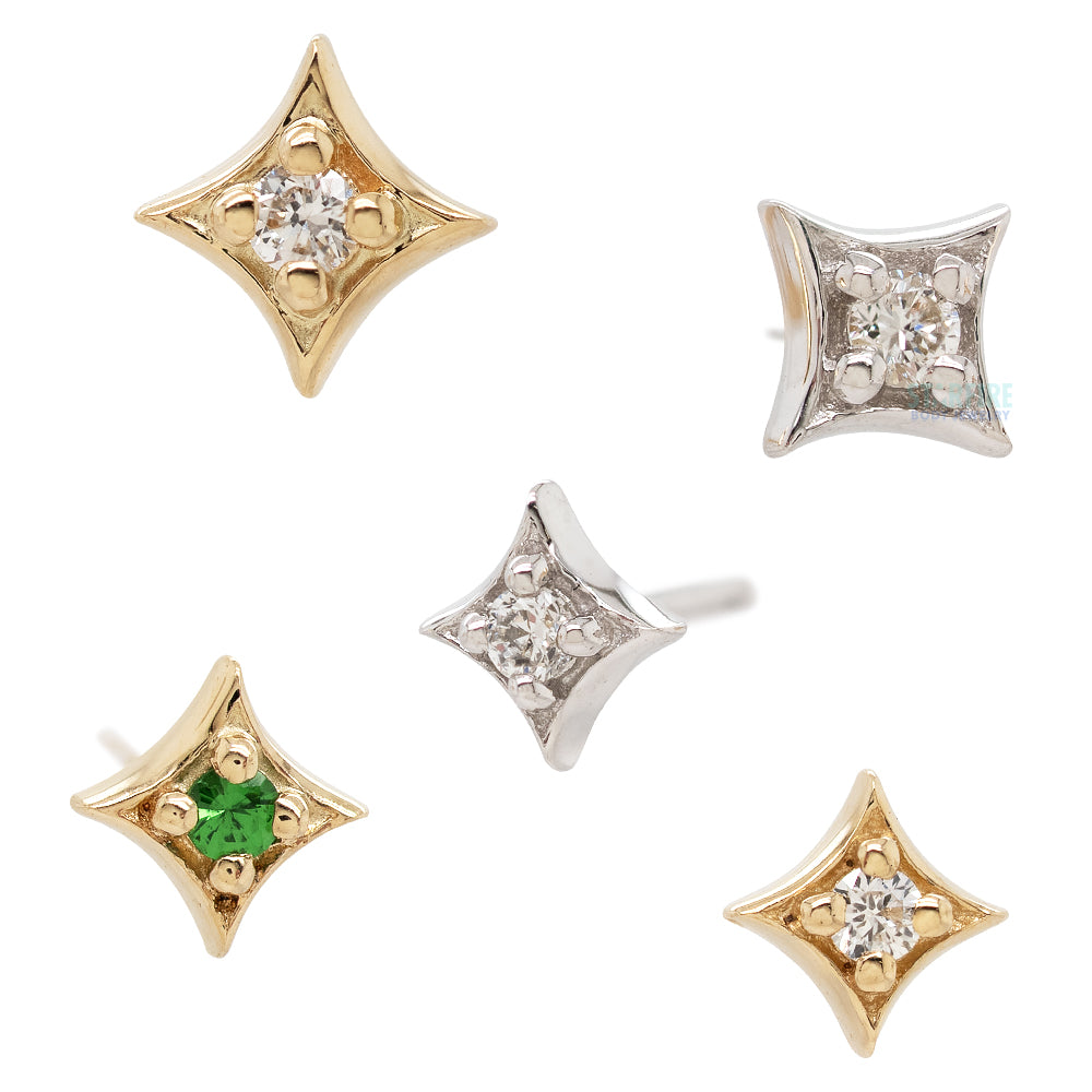Add a touch of whimsy with the "Zara", featuring a four point star design with a gem in the center.