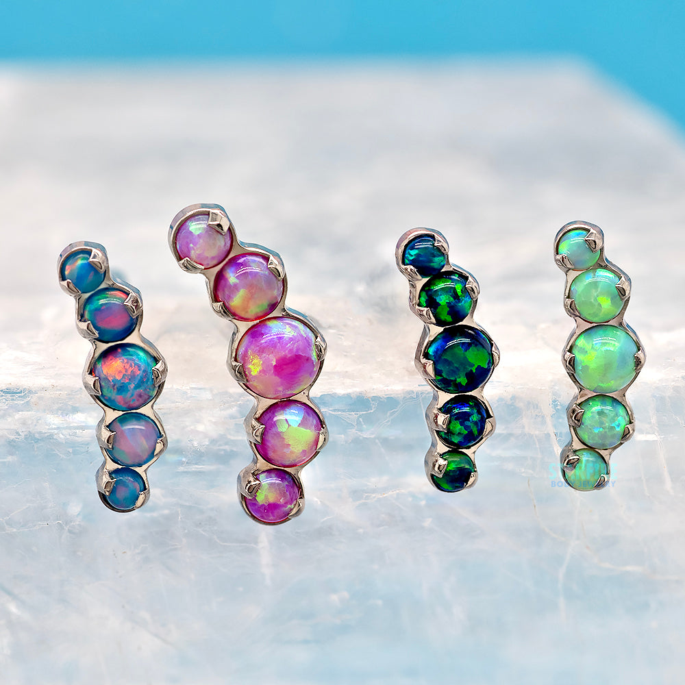 • Mini threaded end length from top of cluster to bottom is 9.5mm. Opal sizes from top to bottom: