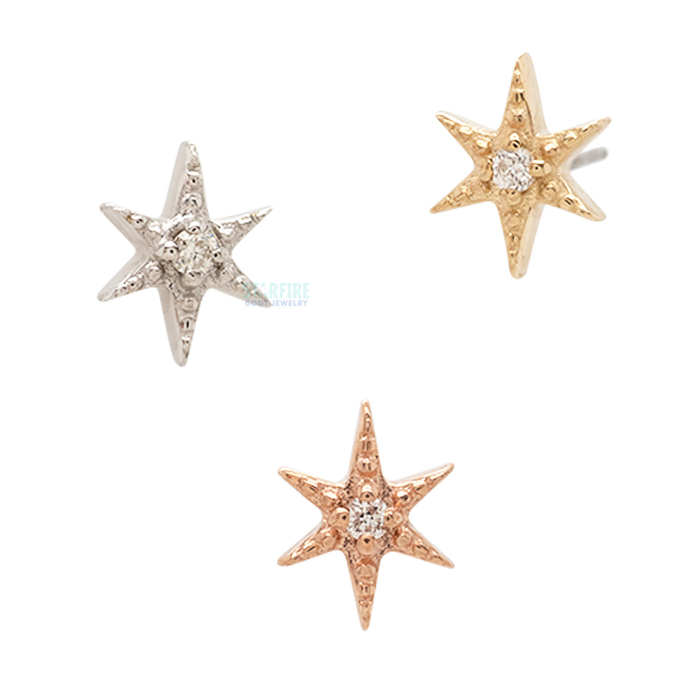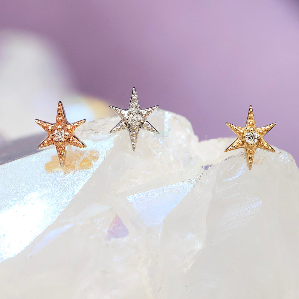 The Mayte's playful 6-point star design shines with a sparkling diamond center and charming beaded detailing.