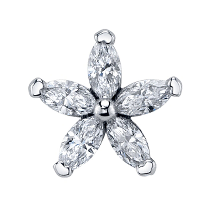 Pear Flower Threaded End in Gold with White CZ & Tanzanite