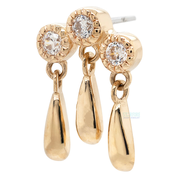 threadless: "Shrine" End with Dangle in Gold with White CZ's