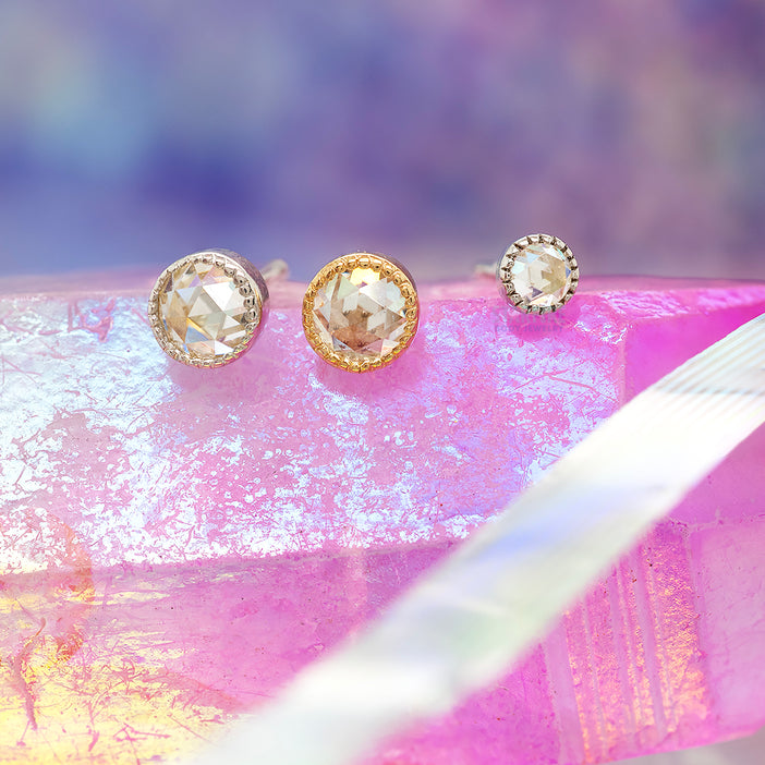 threadless: "Marceline" End in Gold with Rose Cut Moissanite