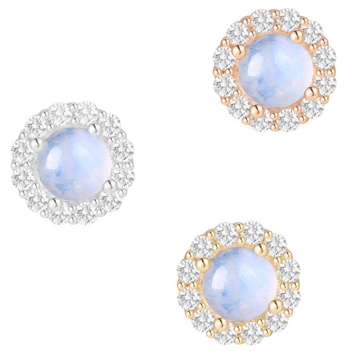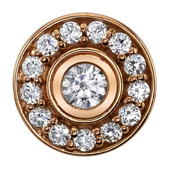Gold & Platinum Threaded Flatback / Labret Post / Straight Barbell End with Fixed Disc with Flush Set DIAMOND