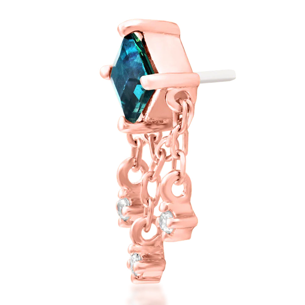 Make your piercing fit for royalty with this "Gari" threadless End! Sparkling with a Square-Cut Lab Grown Alexandrite set in prong's with a dangling chain, it’s sure to dazzle any onlooker!