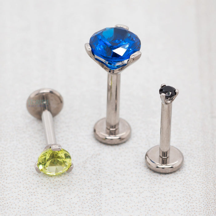 threadless: Gold & Platinum Flatback / Labret Post / Straight Barbell End with Fixed Disc with Flush Set DIAMOND