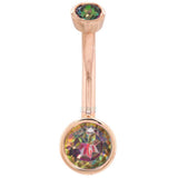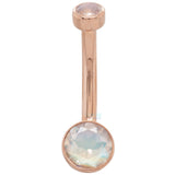 - 6mm fixed bottom with (1) Round Opal Cabochon in open back Bezel with a matching threaded top with (1) 4mm Round Opal Cabochon in a tapered Bezel