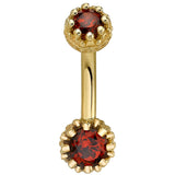 6mm fixed bottom with (1) 4mm Round Garnet and matching 5mm threaded top with (1) 3mm Round Garnet in Crown Prong Setting