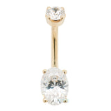 - 8mm x 6mm fixed bottom Oval White CZ in Four Prong Basket Setting with matching 4mm Round White CZ in Prong's threaded top
