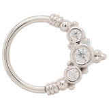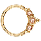 - (1) 2mm Round Champagne Sapphire in Bezel surrounded by (2) 1.5mm Round Champagne Sapphires in Bezel with bead accents