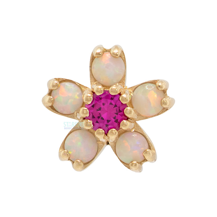 Cherry Blossom Nostril Screw in Gold & Platinum with White Opal & Ruby