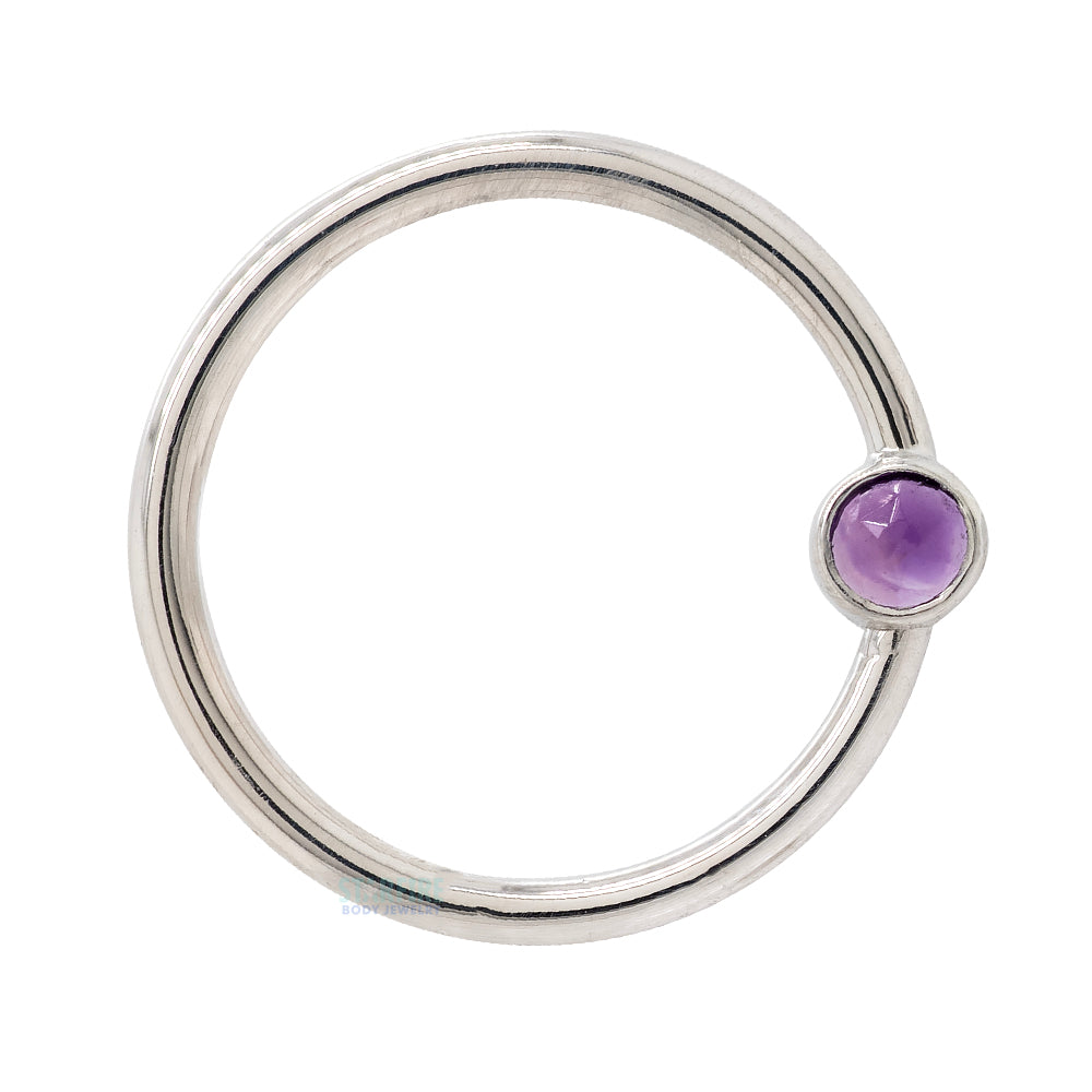 Minimalist but chic, this Round Fixed Bezel Seam Ring is nothing short of style. It features a single Rose Cut Amethyst encased in a bezel cup setting.