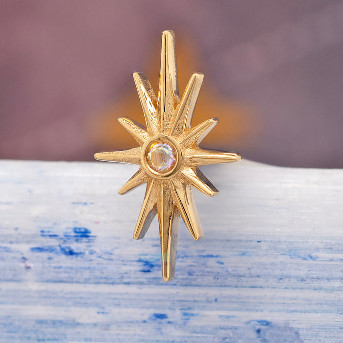 threadless: Snowflake End in Gold with Blue Gemstone