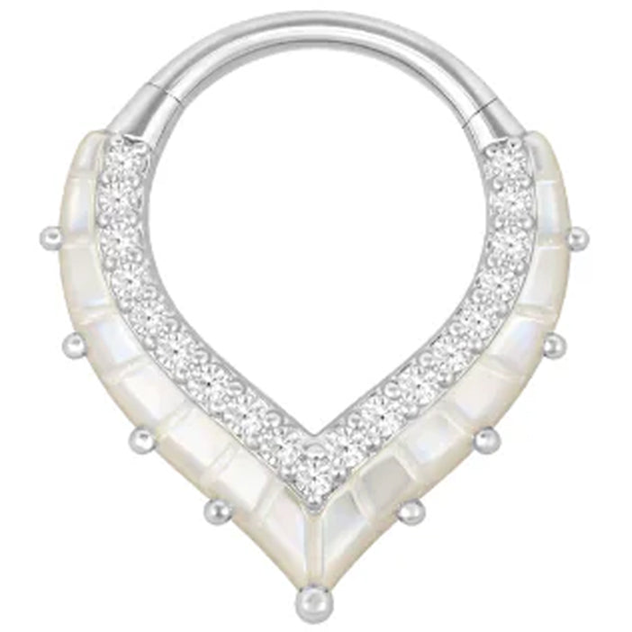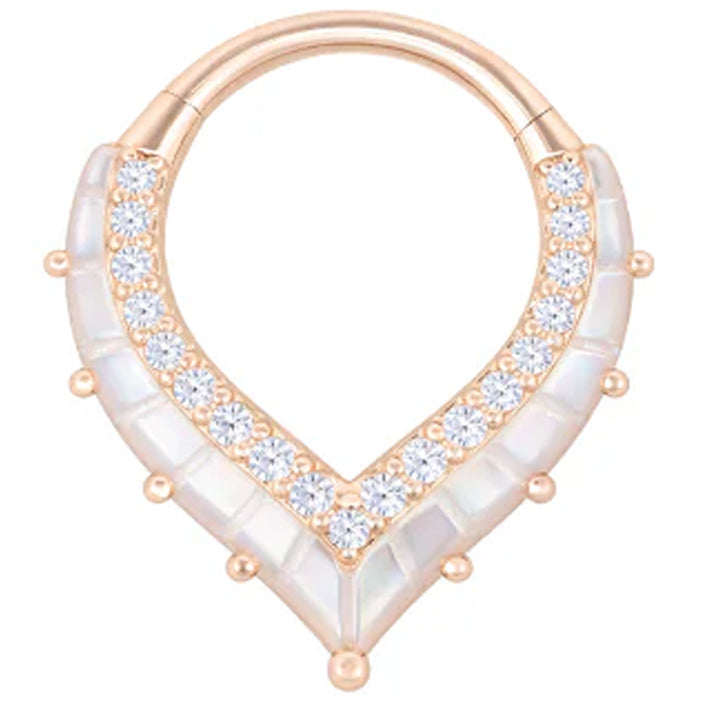 "Arise" Hinge Ring / Clicker in Gold with Mother of Pearl & CZ's