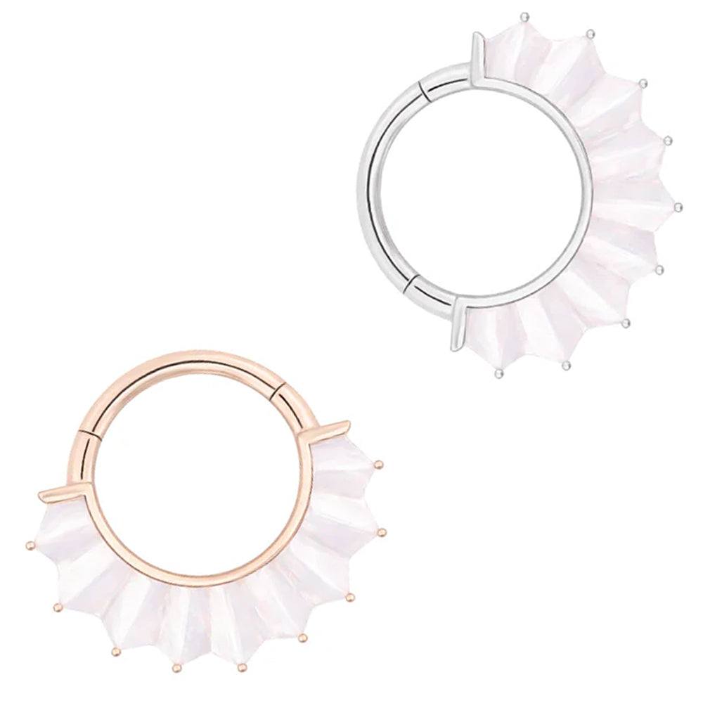 Embrace oceanic elegance with "High Tide", where mother of pearl's natural iridescence evokes the shimmering surface of rolling waves.