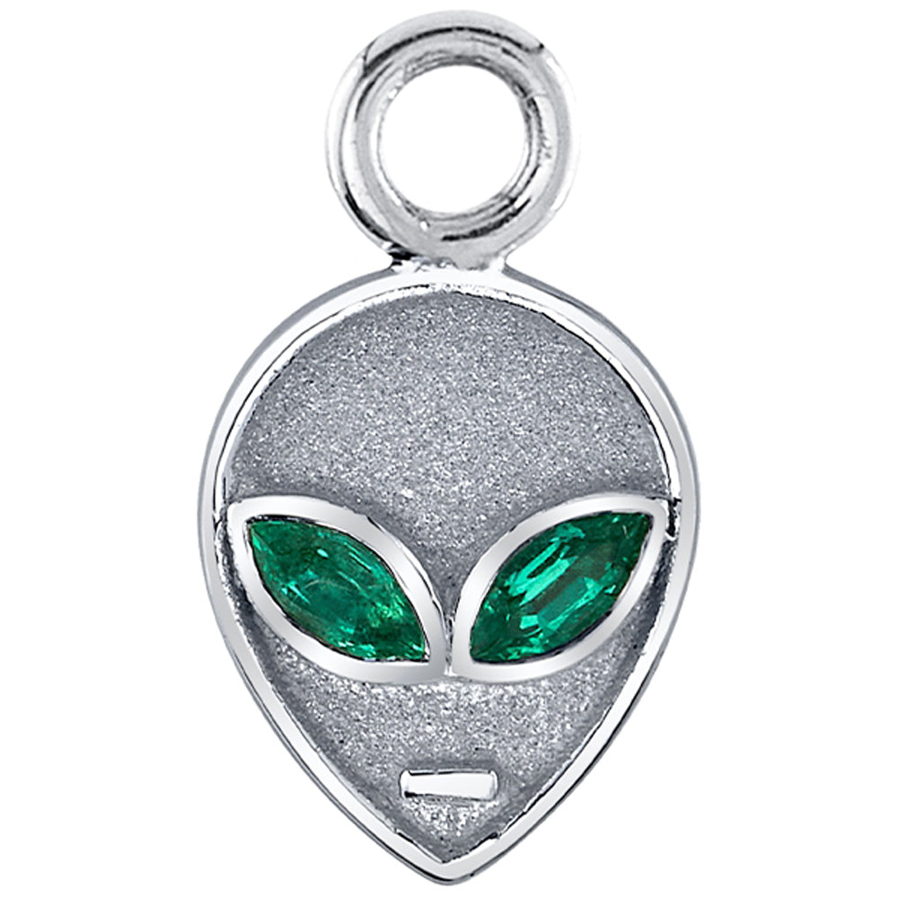 Meet your new otherworldly bestie! This whimsical alien charm features mesmerizing gemmed eyes that sparkle with cosmic mystery.