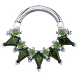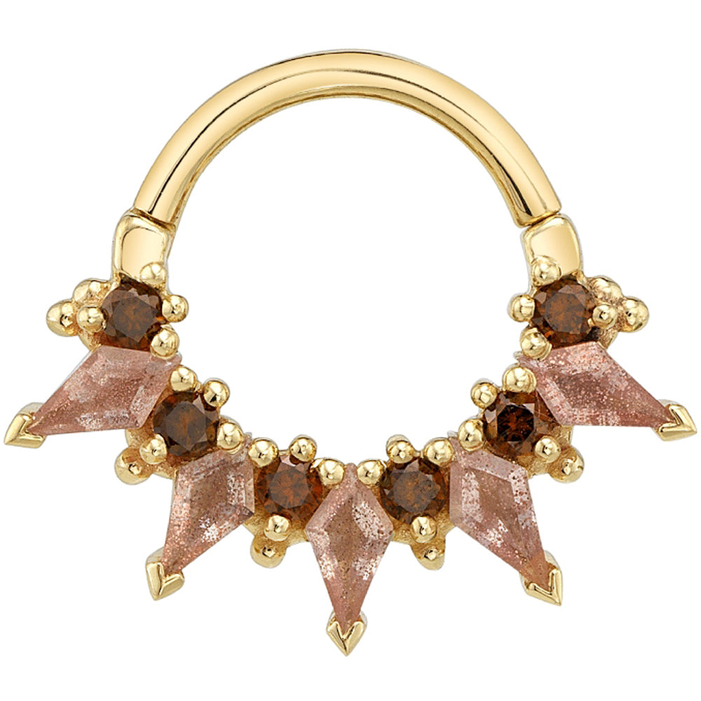 Warm shades of brown and oregon alternating kite cut and round gems, make this hinge ring a total showstopper.