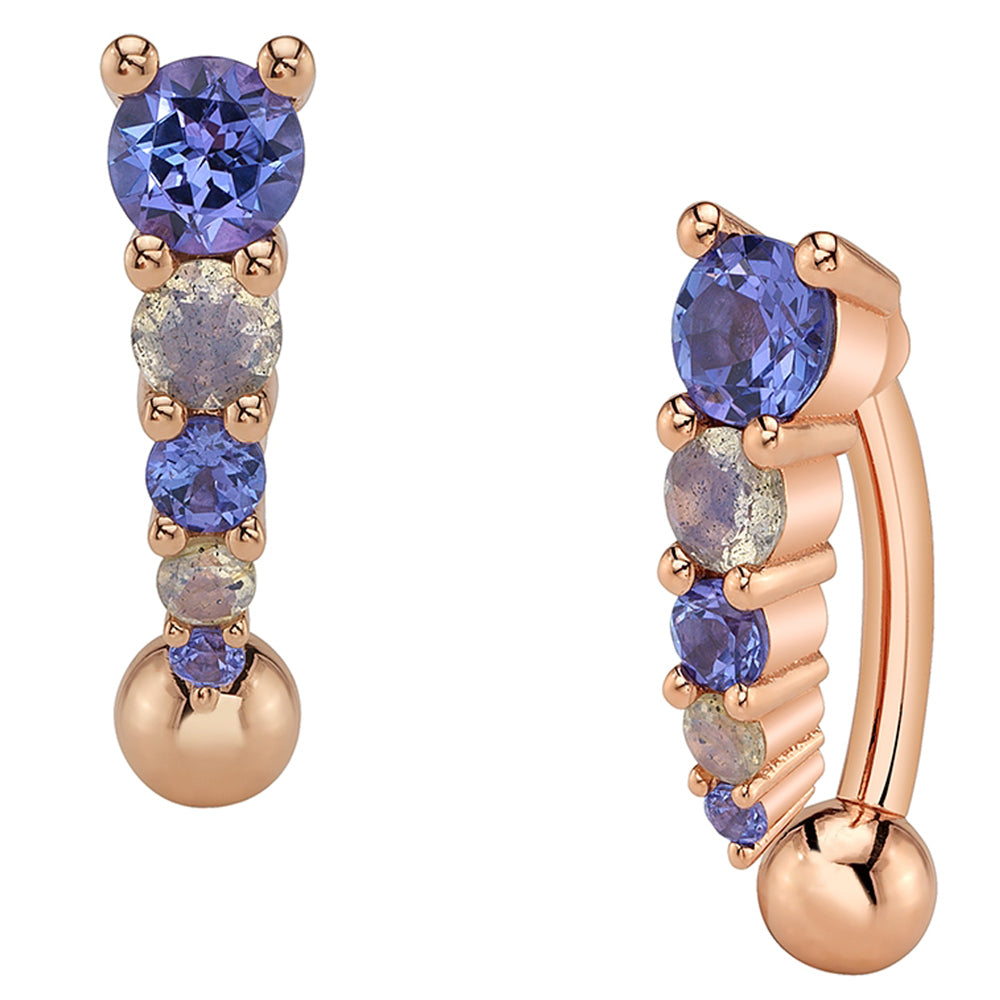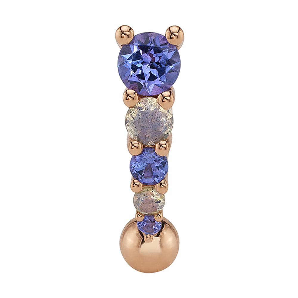 This "Livia" may be petite but it still packs a punch! Let your navel dazzle with a comfort fit navel curve adorned with glamourous graduating Tanzanite & Labradorite.