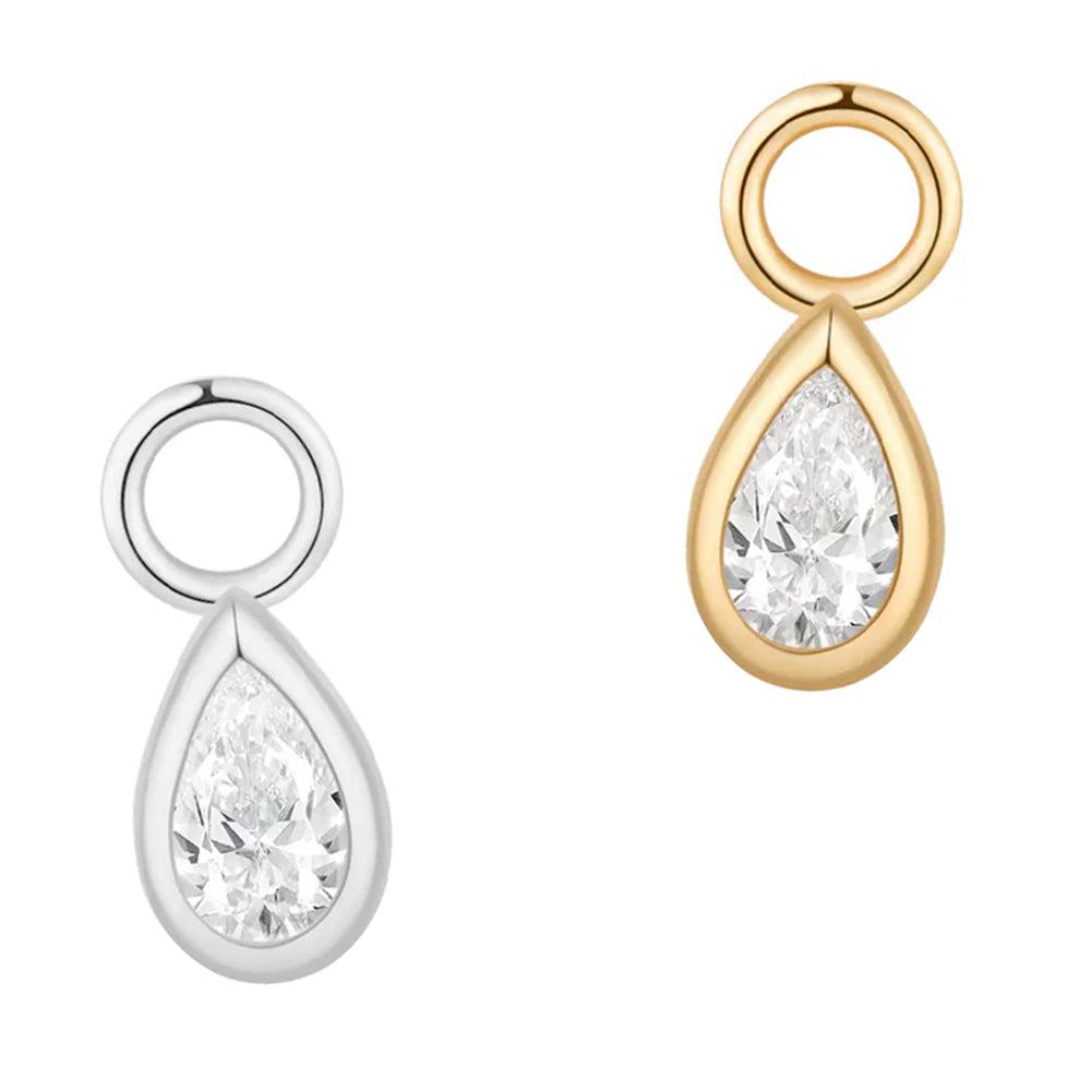 • 4.1mm x 2.8mm charm with (1) 3mm x 2mm Moissanite Pear in Bezel