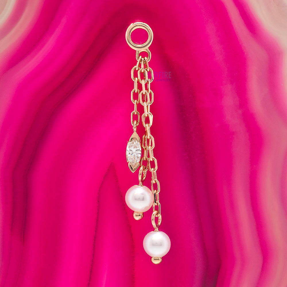 The "Sada" embodies elegance and grace with its delicately staggered chains accented with luminous pearls and a sparkling marquise diamond.
