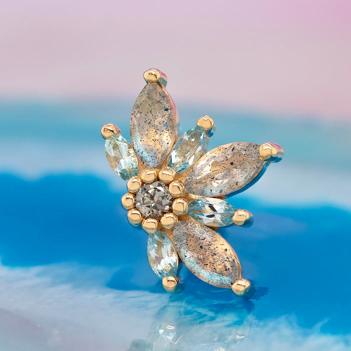 Small "Starling" Threaded End in Gold with Labradorite & Swiss Blue Topaz