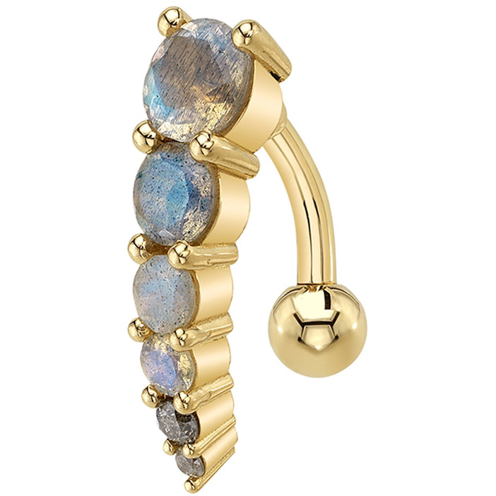 "Livia" Top Loader Navel Curve in Gold & Platinum with Labradorite & Grey Diamonds