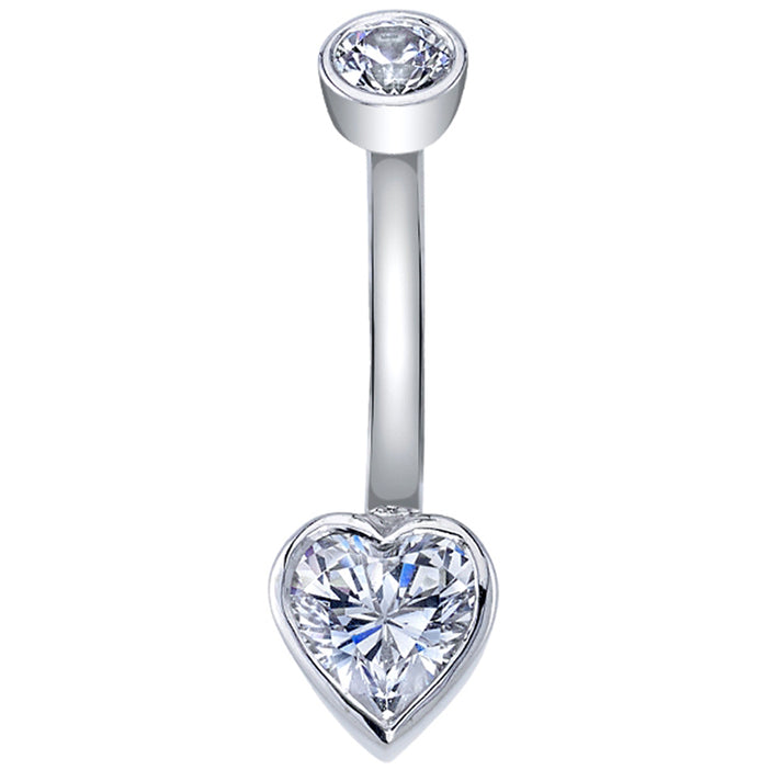 Heart Bezel Navel Curve in Gold & Platinum with White CZ's
