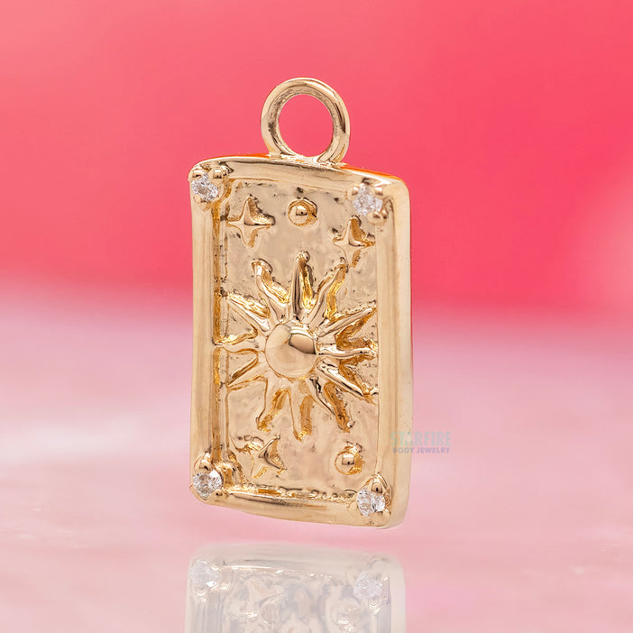 "The Sun" Tarot Card Charm in Gold with Diamonds