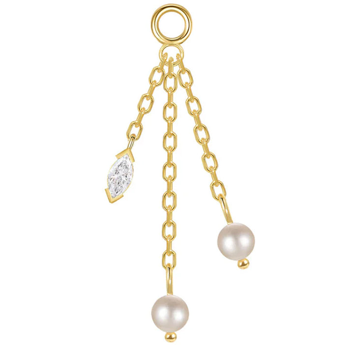 threadless: "Dwiggi" Pear Hidden Helix End with Chains in Gold with Moonstone