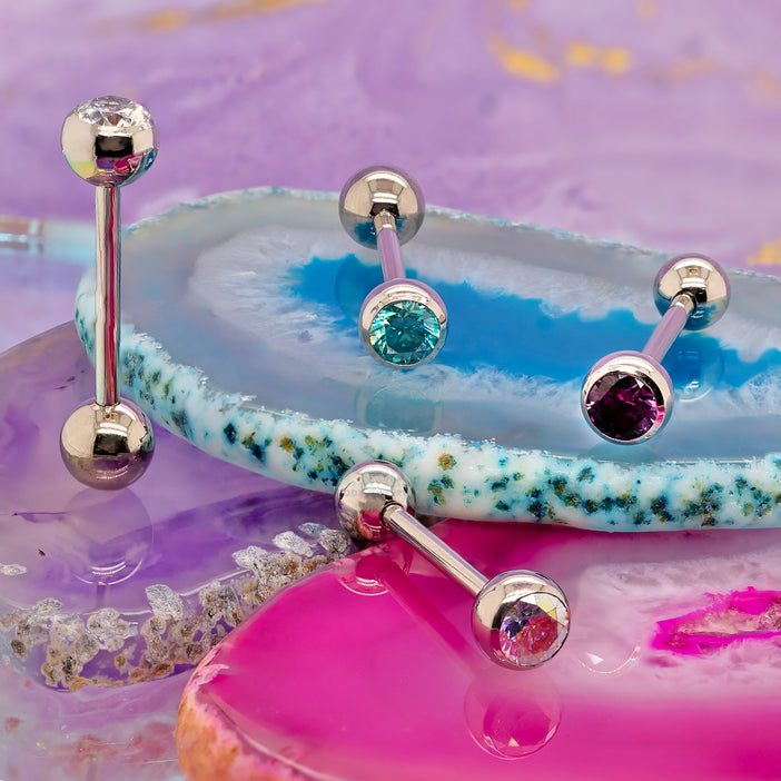 Brilliant-Cut Gem with ball bottom Tongue Barbell